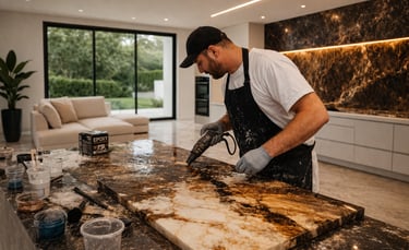 In one day, you'll learn the secrets of creating a chic marble pattern and stone imitation with Epoxy Resin on wall panels & Countertop.