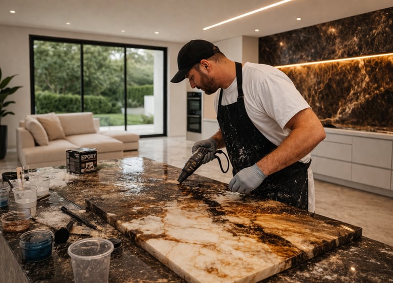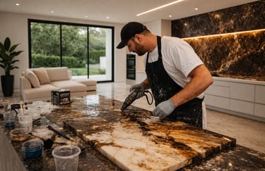Er zijn maar weinig professionals die zijn gespecialiseerd in Luxe Decoratieve Epoxy Resin finishes zoals Marmer- en Steen Imitatie voor Vloeren, Wanden en Keukens.